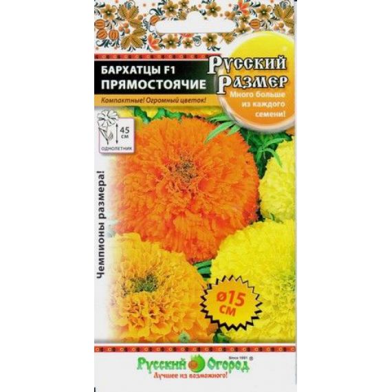 Семена Русский Огород Бархатцы Прямостоячие F1 Русский размер 7шт смесь