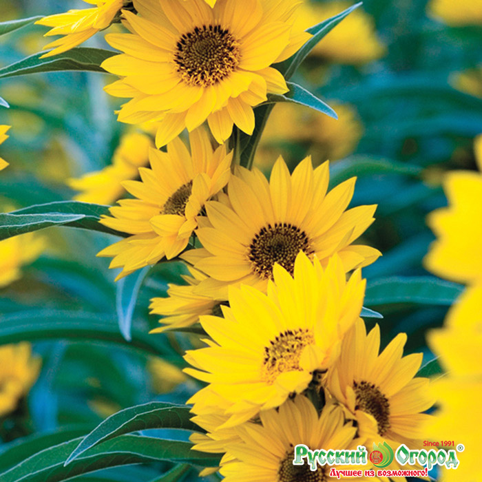 Эффектная многолетняя разновидность подсолнечника, которую часто называют подсолнечник Максимилиана. Во время цветения его прочные стебли снизу доверху покрываются многочисленными золотисто-желтыми, широко открытыми цветками диметром 7 см, источающими сладкий аромат шоколада.