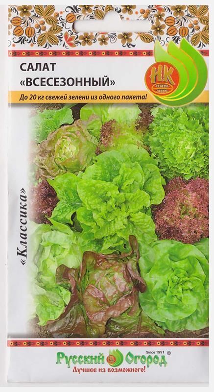 Салат Всесезонный - специально подобранная смесь различных типов салатов, различающихся формой и цветом листьев. Настоящий карнавал цвета, формы и вкуса! Отлично подойдет для декорирования праздничных блюд, а также для придания им самых необычных вкусовых оттенков. Листья салата богаты фолиевой кислотой, которая регулирует обмен веществ, работу нервной системы и мозга, витаминами А и Е, аскорбиновой кислотой, железом и флавоноидами. Оптимальное сочетание полезных веществ в смеси салатов при регулярном употреблении поможет быть в тонусе и заботиться о своем здоровье: питаться правильно и со вкусом.