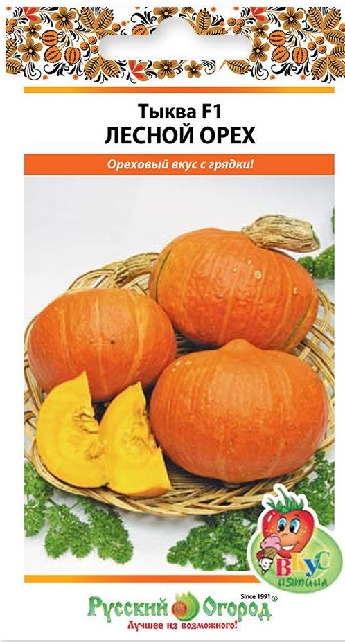 Тыква Лесной Орех F1 – очень необычный сорт, который имеет ярко выраженный привкус орехов! Радость для нас и наших клиентов, которые год от года с удовольствием собирают такой оригинальный урожай. Плоды красивого оранжево-красного цвета, каждый весит в пределах 1-1,5 кг. Плоды хорошо хранятся! Также у тыквы Лесной Орех F1 плотная и крахмалистая мякоть. Идеальна как для каш, так и для различных овощных запеченных или тушеных блюд.