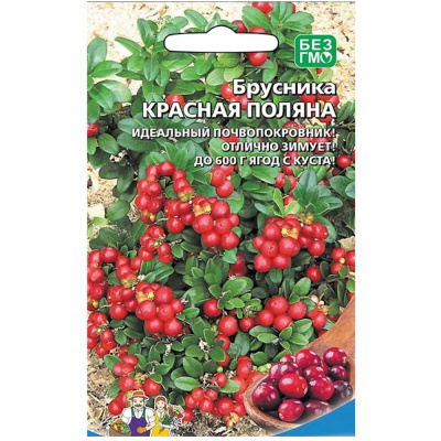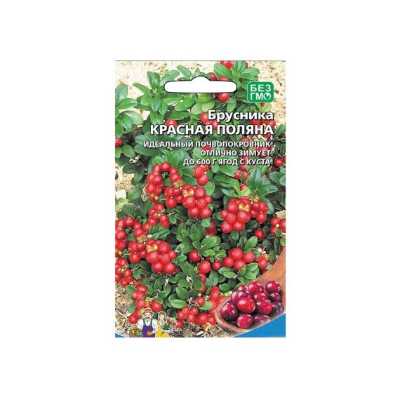 Вечнозеленый многолетний стелющийся полукустарник, высотой 25-30 см. Листья кожистые, темно-зеленые, блестящие, цветки бледно-розовые. Ягоды округлые, светло-красные, массой 0,5 г, кисло-сладкого, освежающего вкуса. С одного куста можно получить до 600 гр. ягод. Многочисленные плоды брусники обладают огромным запасом витаминов и могут использоваться как для консервирования, так и для потребления в свежем виде.Для выращивания брусники требуются кислые почвы (рН-3,5–4,5). Высевать семена на рассаду можно под зиму или рано весной. При посеве необходима стратификация, для этого семена помещают во влажный песок и выдерживают 3 месяца на нижней полке холодильника. Семена высеваются по поверхности, не заделываются. В фазе 2-4 настоящих листьев сеянцы пересаживают в школку, для доращивания, после чего их высаживают на постоянное место.