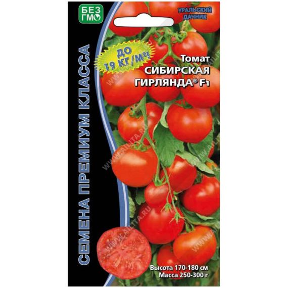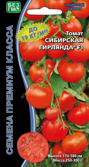 Экстремально ранний гибрид, период от всходов до начала созревания 90-95 дней. Растение мощное, высотой 170-180 см, формировать следует не менее чем в 2 ствола. Первая кисть закладывается над 6-м листом, последующие через 2-3 листа. Кисть с 6-8 плодами, на растении формируется 10-11 кистей – всё это великолепие выглядит просто завораживающе, кисти как настоящие гирлянды с яркими плодами. Плоды интенсивно красной окраски, округлые, гладкие, плотные, массой 250-300 г, сочетающие наивысшие вкусовые качества с транспортабельностью. Урожайность стандартных плодов умопомрачительная 17-19 кг/м?.