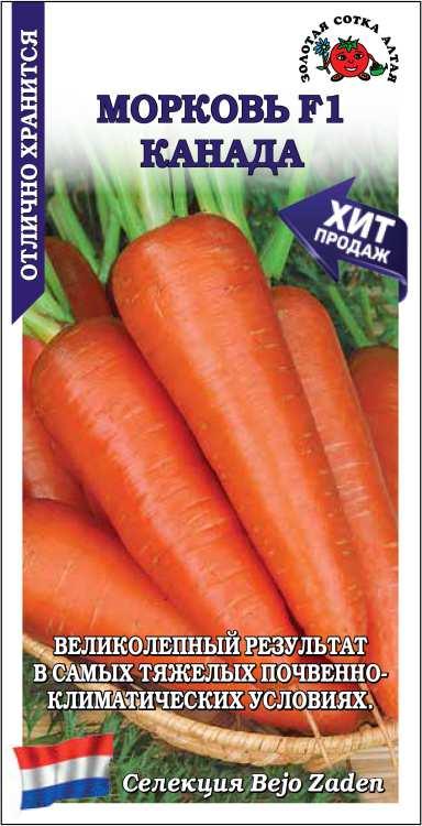 Самый популярный среднепоздний гибрид. От всходов до сбора урожая 120-130 дней. Корнеплоды ярко-оранжевые, удлиненно-конические, длиной 18-20 см. Сердцевина маленькая. Мякоть нежная, сочная и сладкая. Гибрид используется в свежем виде, для приготовления соков, переработки и хранения. Устойчив к растрескиванию и цветушности, дает великолепный урожай даже в самых тяжелых почвенно-климатических условиях.