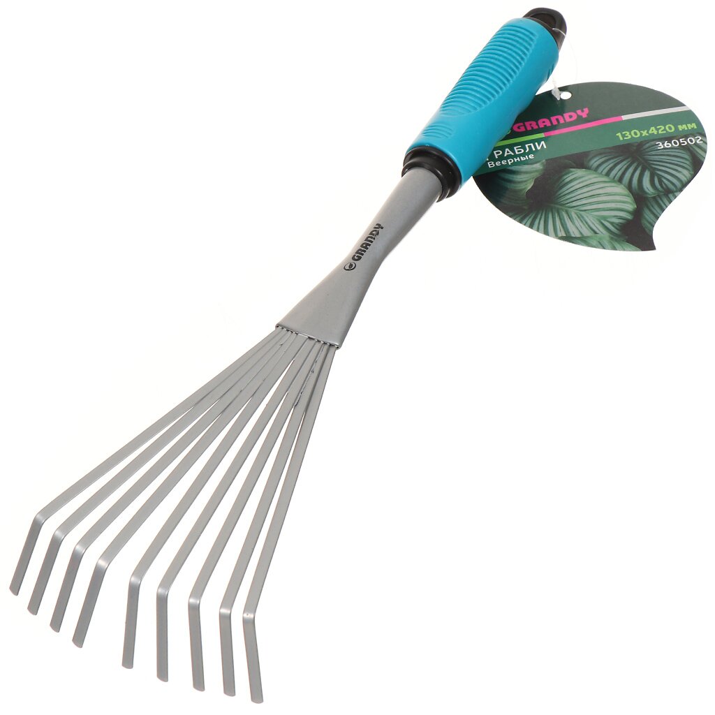 Грабли веерные, 9 зуб, сталь, 13 см, Grandy, Connect, черенок пластиковые 360502