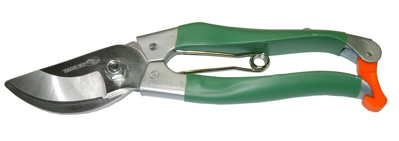 Секатор оснащен плоскостными лезвиями из закаленной стали, которые обеспечивают чистый и аккуратный срез. Загнутая форма лезвий позволяет работать с ветками и сучками различного диаметра. Рабочий диаметр составляет 20 мм.