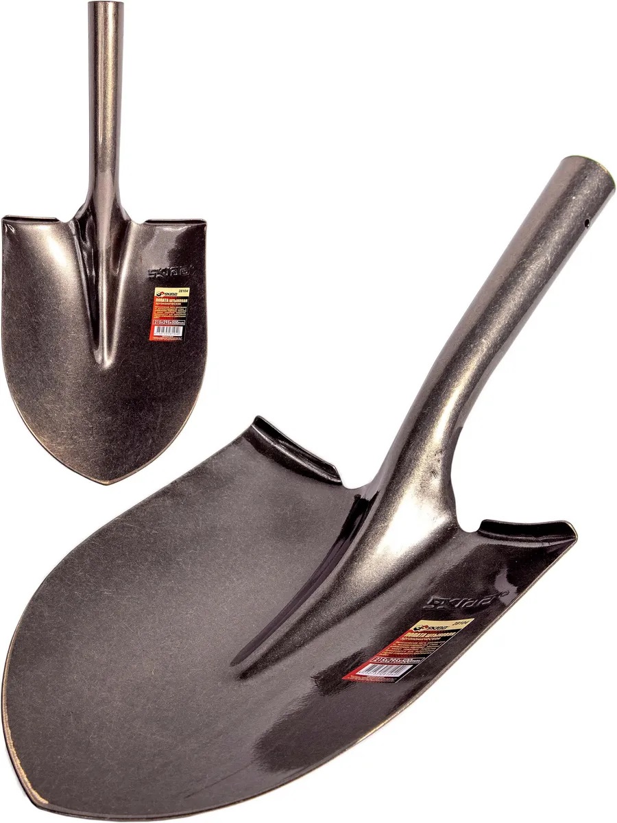Высокоуглеродистая сталь с добавлением марганца обеспечивает прочность и долговечность лопаты. Закаленное покрытие защищает металл от коррозии и увеличивает срок службы инструмента.