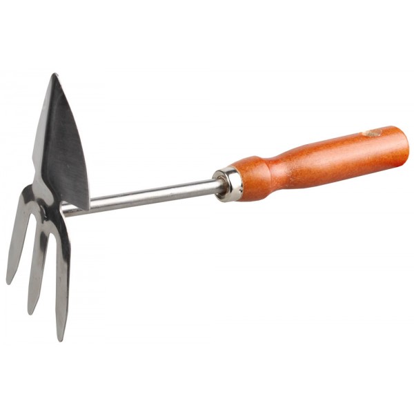 Ручной садово-огородный инструмент из нержавеющей стали с деревянной ручкой создан специально для качественной и неутомительной обработки почвы. Рабочая часть всех инструментов выполнена из высококачественной стали, не подверженной коррозии. Рукоятки эргономичной формы изготовлены из дерева твердых пород, отполированы, покрыты лаком и имеют удобное отверстие для подвеса. Применяется для прополки растений и рыхления почвы.