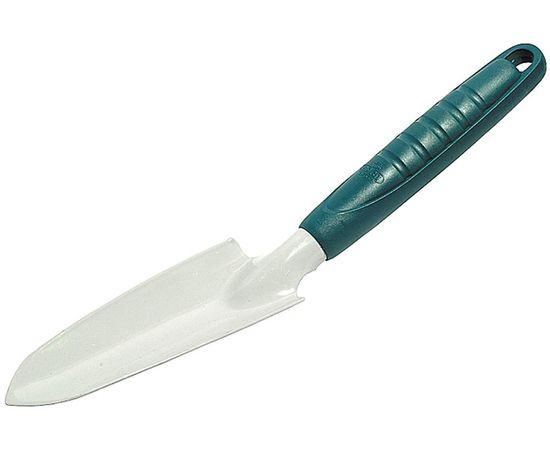 Совок посадочный RACO 4207-53483, предназначен для выкапывания лунок для рассады необходимого размера. Рабочая часть из штампованной стали с антикоррозийным эпоксидным покрытием, обеспечивающим защиту от коррозии и увеличивает срок службы изделия. Ручка из ударопрочного материала.