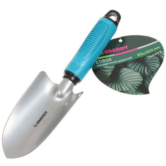 Широкий посадочный совок Grandy используется для посадки рассады и цветов на клумбах и грядках. Изделие оснащено пластиковой рукояткой, которая комфортно располагается в руке и не выскальзывает в процессе посадочных работ. По окончании использования рабочую часть инструмента необходимо очистить от остатков грунта.
