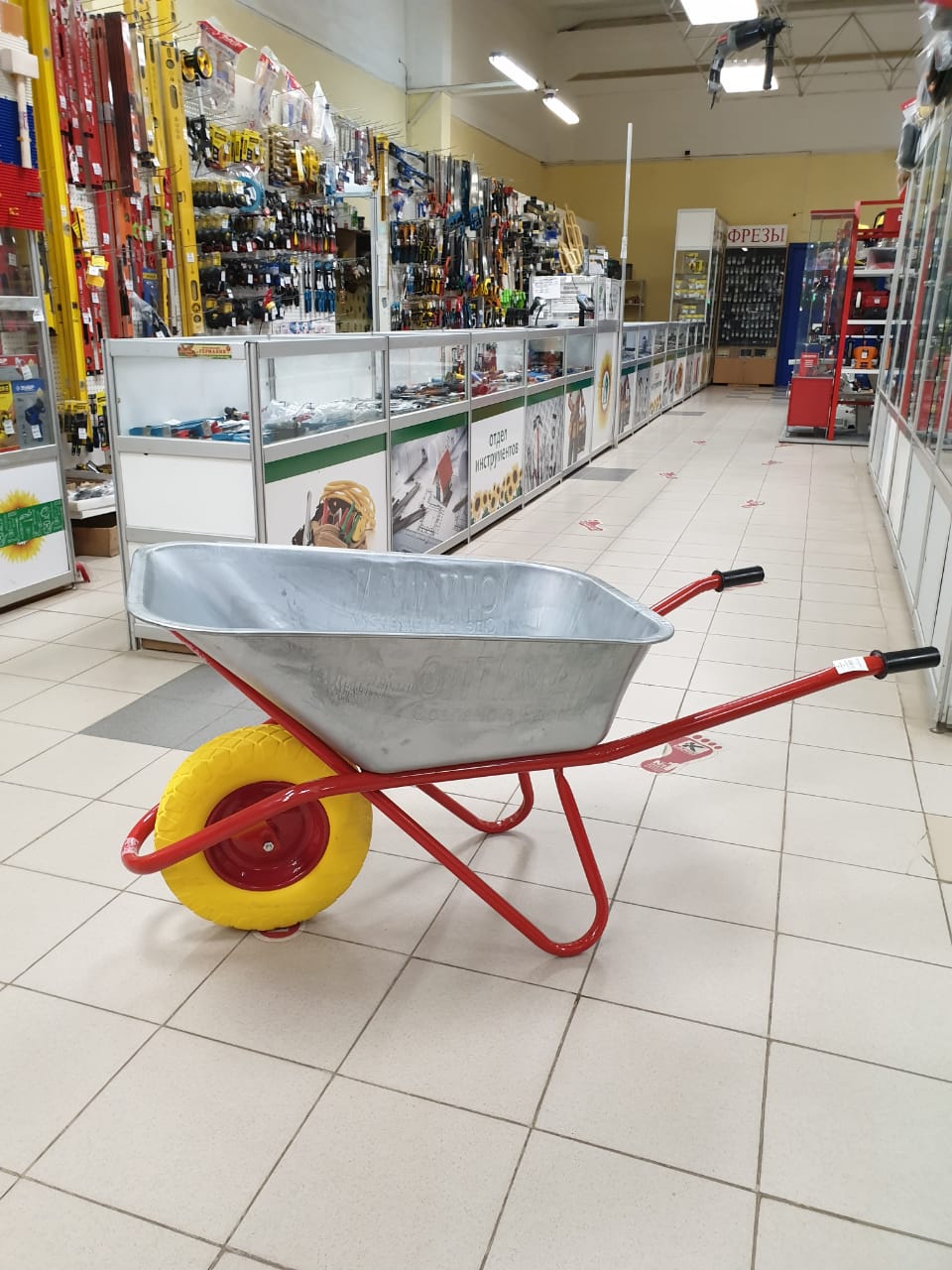 Тачка строительная 110л красная/зеленая (литое колесо)
