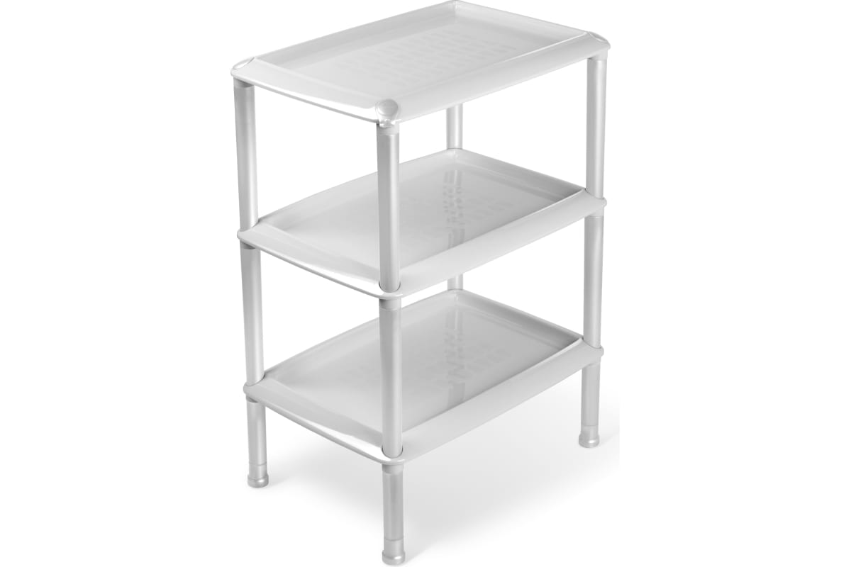 Этажерка позволит организовать пространство в небольшом помещении, например в прихожей или ванной. Пластик хорошо переносит влажность. Ухаживать за ним также легко - очистить поверхность полок можно при помощи обычных моющих средств без применения абразивных материалов. Нескользящая поверхность и бортики по краям полок обеспечат устойчивость размещенных предметов. Для удобного перемещения по комнате этажерка снабжена колесами. Рекомендуемая общая нагрузка на этажерку до 8 кг.