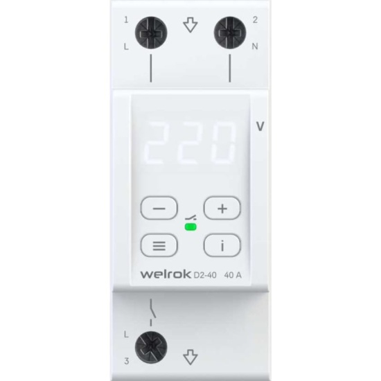 Реле напряжения Welrok D2 защищает оборудование от скачков и провалов напряжения, обрыва нулевого провода. Реле отключает нагрузку, если сетевое напряжение выходит за установленные пределы. Когда значение напряжения вернется в норму, нагрузка будет автоматически включена обратно.