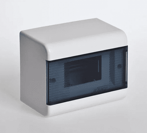 Щиток модульный для автоматических выключателей, для открытой проводки, настенный, с прозрачной дверцей, в комплекте с DIN-рейкой, заземляющими латунными шинами «земля-ноль», пластиковыми опорами под нулевую шину, крепежом, типоразмер: 6 модулей, 160х132х93 мм, IP40, белый