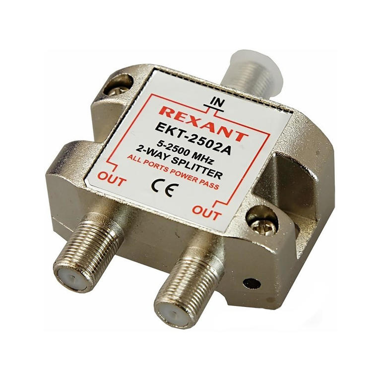 Делитель сигнала на 2 ТВ под F разъём 5-2500 МГц, позволяет передавать постянный ток для питания антенных усилителей и пр.