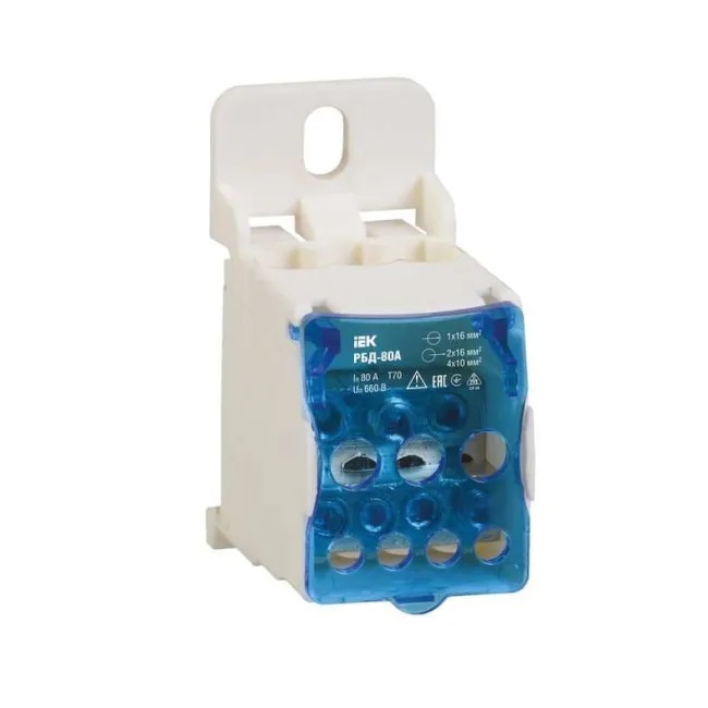 Распределительные блоки РБД предназначены для использования в качестве клеммного зажима при подключении к проводнику большего сечения нескольких проводников меньшего сечения, для создания упорядоченных систем распределения в шкафах, для организации главной заземляющей шины. Предназначены для монтажа на DIN-рейку или на монтажную панель как в силовых шкафах, так и в квартирных распределительных щитах, для работы в сетях с напряжением до 1000 В частоты 50 Гц при температуре окружающего воздуха от –40 до +70 С. Распределительные блоки РБД изготовлены из высококачественной латуни с нанесенным специальным защитным покрытием. Корпус выполнен из негорючего пластика. Способы установки: – на монтажную DIN-рейку 35 мм, – на панель щита двумя винтами.