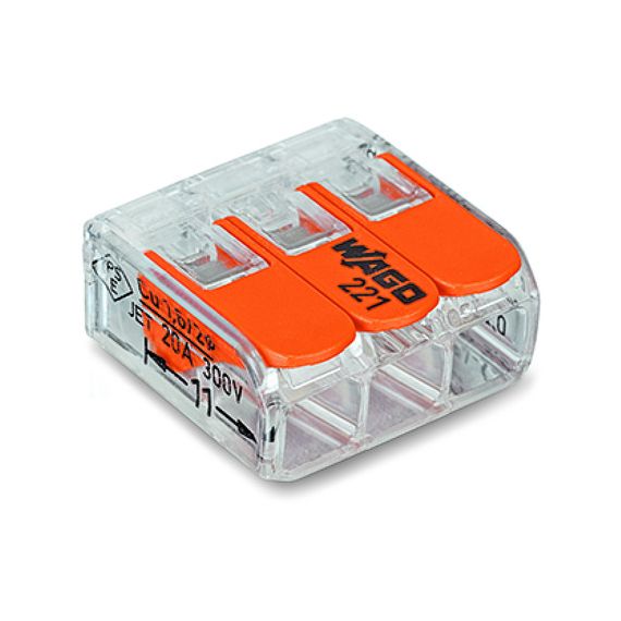 Простота в обращении Рычаги серии 221 требуют приложения меньшего усилия для их открытия, что позволяет быстро и легко подключать проводники без использования инструментов! Захваты с углублениями по бокам корпуса клемм также предотвращают их выскальзывание и облегчают удерживание клемм при подключении проводника.