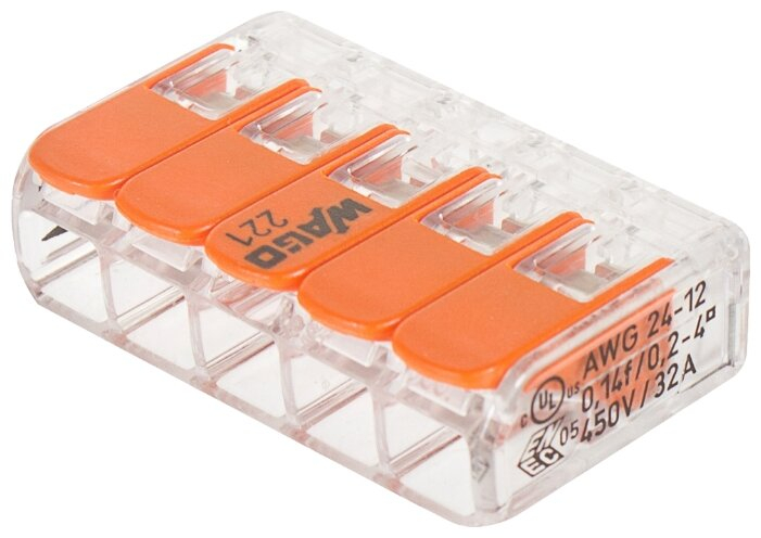 Клемма универс. компактная 5х(0.14-4.0) WAGO 221-415 – устройство для присоединения и подключения к электросети.