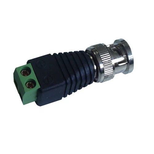 Штекер BNC с клеммной колодкой используется в качестве коммутационного элемента в системах видеонаблюдения и видеорегистрации. Позволяет быстро подключить коаксиальный кабель к камерам, мониторам и другим радиоэлектронным устройствам. Закрепляется на кабеле путём зажима жил с помощью двух винтов. Для удобства монтажа на корпус нанесена маркировка «+» и «-».