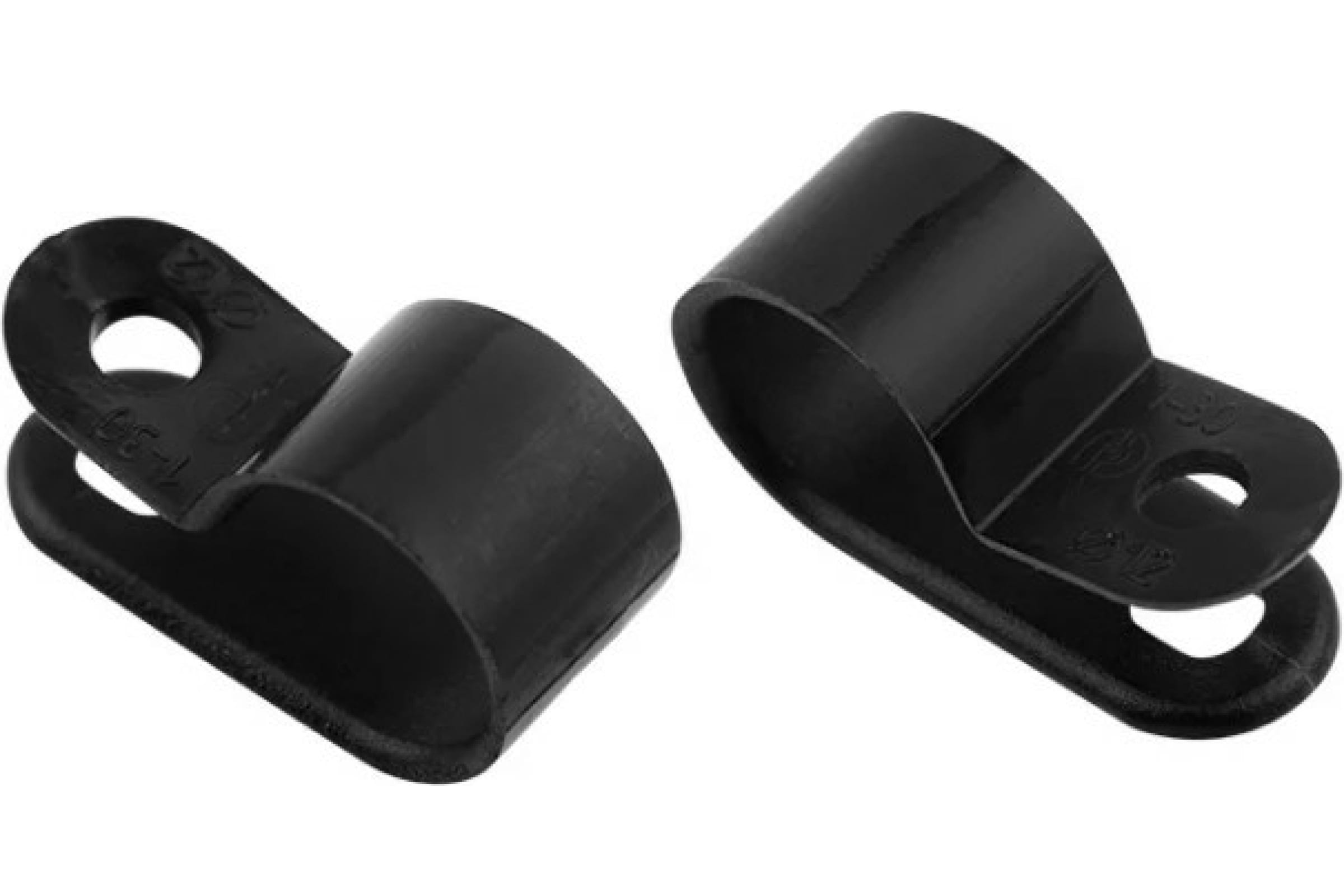 Представляет собой нейлоновую петлю, два конца которой имеют отверстия для крепления к поверхности, данный вид крепежа также называют «серьгой» или «клипсой» для крепления кабеля. Скоба предназначена для крепления как отдельных кабелей (проводов), так и пучков