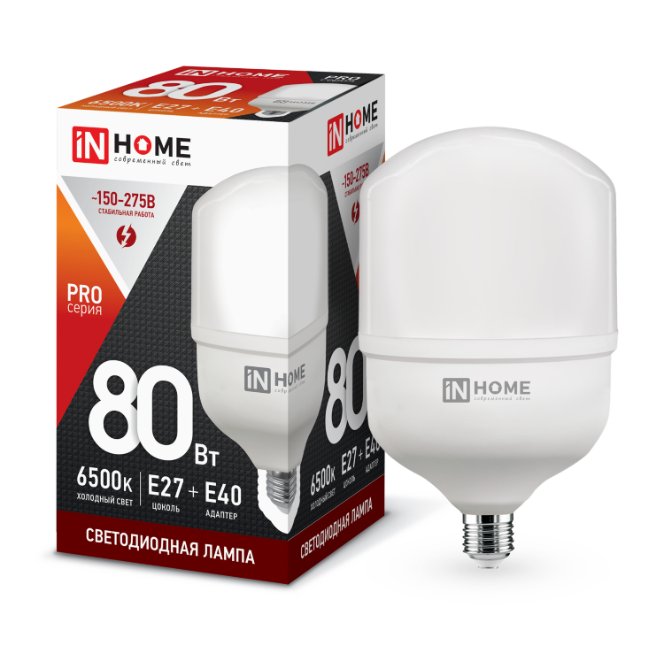 Лампа LED HP-PRO 80Вт 230В E27 6500К 7200Лм с адаптером Е40 IN HOME 1149