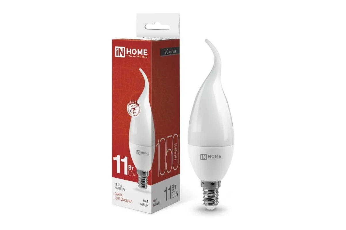 Лампа светодиодная LED-СВЕЧА НА ВЕТРУ-VC 11Вт 230В Е14 4000К 1050Лм IN HOME 30470