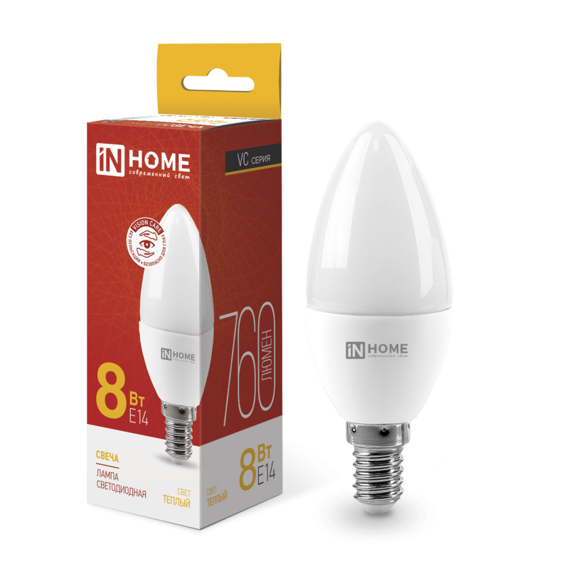 Светодиодная лампа LED-СВЕЧА-VC от ТМ IN-HOME, созданная по уникальной технологии VISION CARE, обеспечивает комфортный свет без вредных пульсаций, защищая глаза от усталости и раздражения. Изящная декоративная форма лампы добавит домашнему интерьеру романтики и индивидуальности. Светодиодная лампа-свеча очень экономична, ее использование позволяет сократить расходы на электроэнергию до 90%. Еще одним достоинством светодиодных источников света является долговечность эксплуатации, она прослужит не менее 30 000 часов (20 лет из расчета по 4 часа в день). Выпускается с цоколем Е14. Гарантия 2 года.