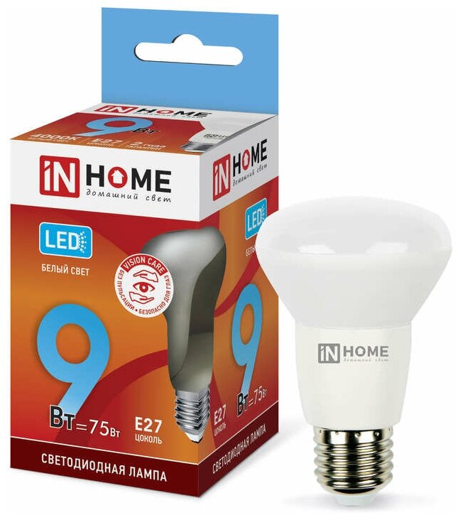 Лампа светодиодная LED-R63-VC 9Вт 230В Е27 4000К 810Лм IN HOME