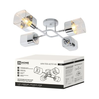 Светильники поворотные серии AURA TESO под лампу Е27 с квадратными плафонами оригинальной формы, где комбинация прозрачного стекла и блестящего хрома в сочетании с белым основанием создают эффектное сочетание современности и изыска. Поворотные плафоны с возможностью вращения на 360 градусов обеспечивают идеальное направление света, что позволяет максимально эффективно освещать пространство. Надёжный патрон обеспечивает плотный контакт с цоколем лампы, что исключает возможность окисления, а предварительно скоммутированные провода упрощают процесс монтажа.