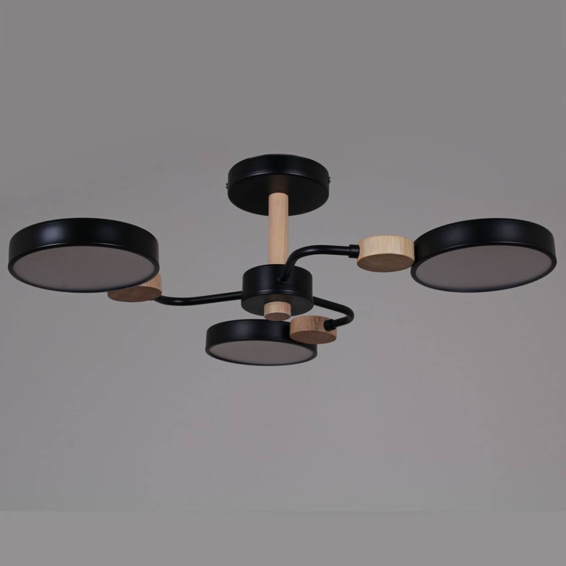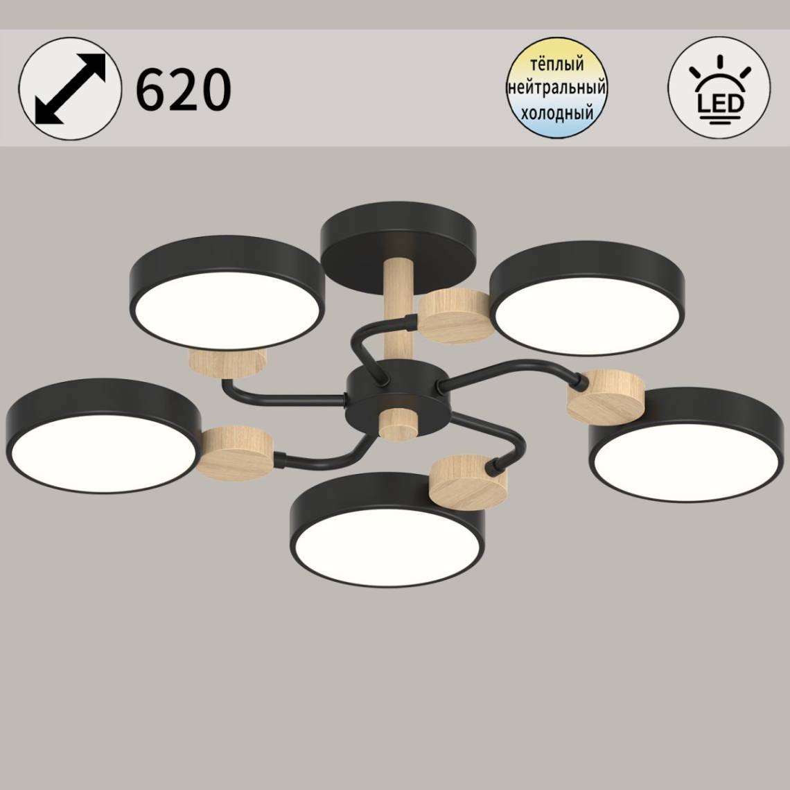 Люстра имеет функциональную и продуманную форму: её высота составляет 180 мм, диаметр — 620 мм. Для установки используется надежная монтажная пластина. Вес люстры — всего 2.2 кг, что делает её удобной для самостоятельной установки. Арматура люстры изготовлена из металла, что делает люстру долговечной и устойчивой, черная арматура делает люстру строгой и выразительной. Плафон выполнен из акрила добавляя современный штрих, а его поверхность в белом цвете создающем ощущение простора и чистоты. Направление света вниз создаёт функциональное освещение.