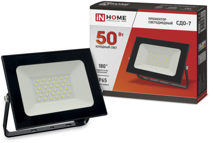 Прожектор светодиодный СДО-7 50Вт 230В 6500К IP65 черный IN HOME 4638
