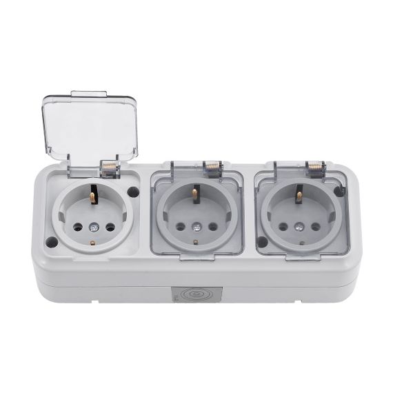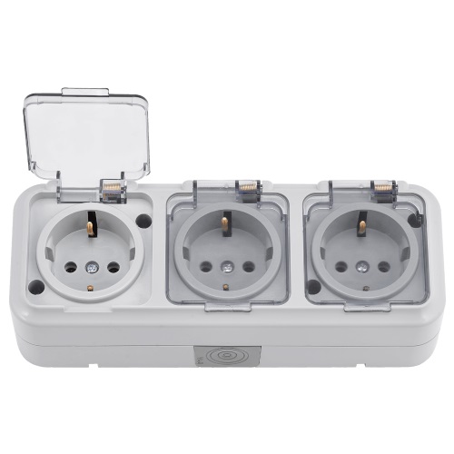 Розетка 3-м РА16-0132(02) о/п IP54 з/к серый прозрачная крышка Пралеска Аква 05515