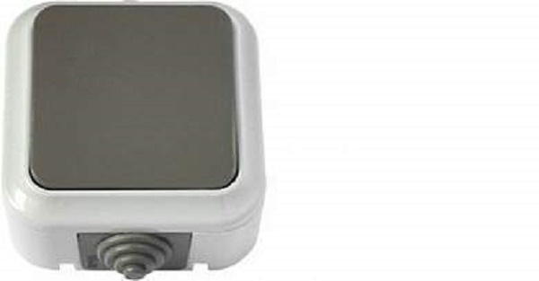 Выключатель одноклавишный для открытой установки брызгозащищенный серый,напряжение 250 В,частота тока 50 Гц,номинальный ток 6 А,УХЛ4,IP54,сечение проводников от 1,00 до 2,50 мм?,установочные размеры (расстояние между отверстиями под шурупы) 53±0,2 мм,габаритные размеры 70х70х40,5 мм