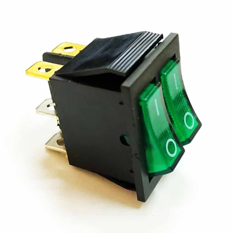 Выключатель клавишный 250V 15А (6с) ON-OFF зеленый с подсветкой ДВОЙНОЙ