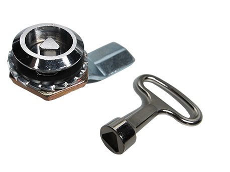 Герметичные замки с мастер системой и цельнометаллическим треугольным ключом предназначены для установки в дверцах электрощитов, имеющих степень защиты IP-54 или IP-55. Для установки используется усиленная, ребристая гайка с крупной резьбой.Ключ в комплекте один.