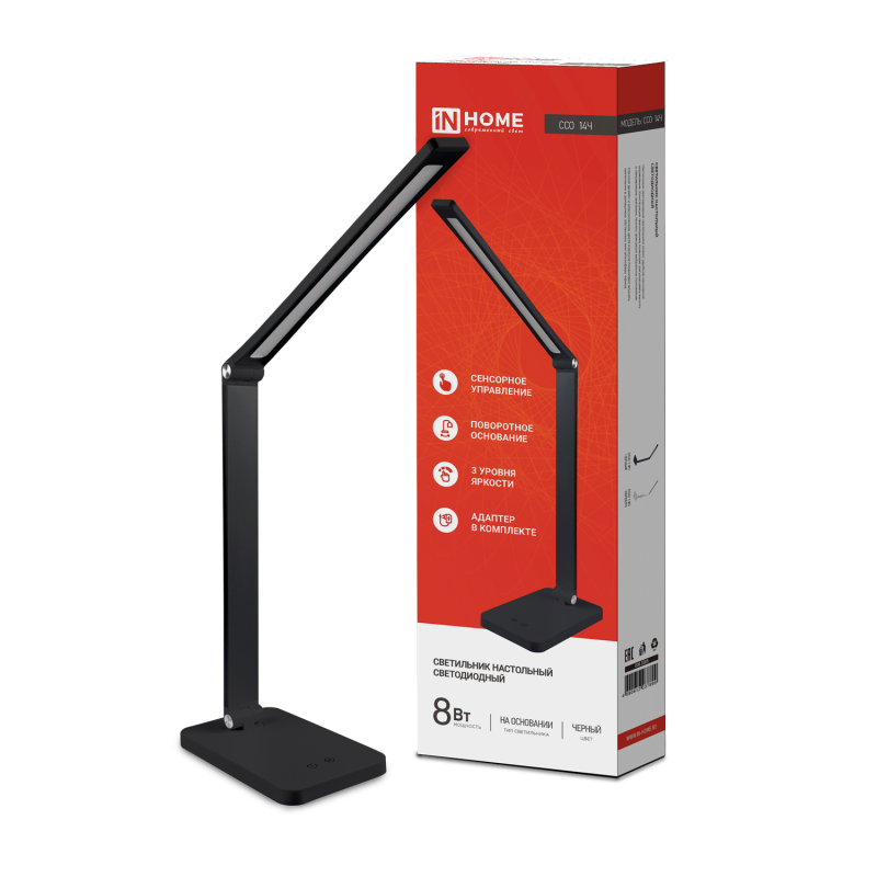Основное назначение настольного светодиодного светильника ССО 14 от ТМ In Home – дополнительное освещение рабочего стола. Модель подходит как для дома, так и для офиса. Удобное сенсорное управление позволяет регулировать уровень яркости светового потока (три режима мощности). Питание светильников ССО-14 осуществляется от бытовой электросети 230В. Адаптер входит в комплект. Светодиодные светильники In Home гарантируют высокую экономичность, экологическую безопасность и комфорт для зрения.