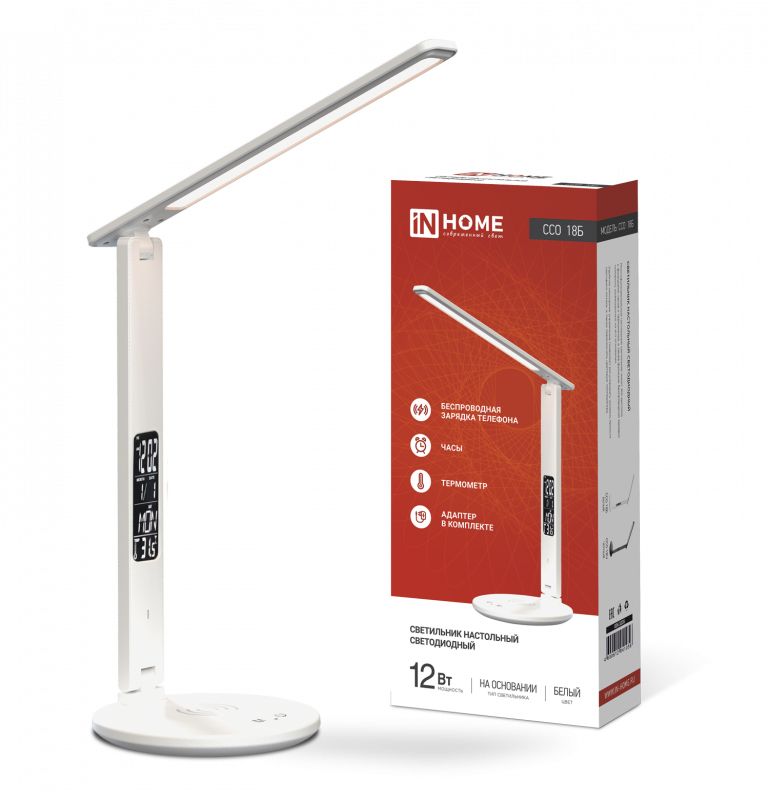 Основное назначение настольного светодиодного светильника ССО 18 от ТМ In Home – дополнительное освещение рабочего стола. Модель подходит как для дома, так и для офиса. Удобное сенсорное управление позволяет регулировать уровень яркости светового потока (три режима мощности) и уровень цветовой температуры. Светильник оснащен дополнительными функциями - часы, термометр и беспроводная зарядка мобильного телефона. Питание светильников ССО-18 осуществляется от бытовой электросети 230В. Адаптер входит в комплект. Светодиодные светильники In Home гарантируют высокую экономичность, экологическую безопасность и комфорт для зрения.