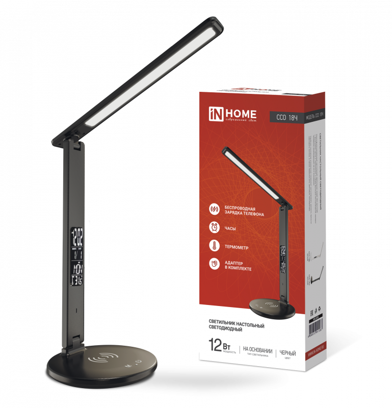 Основное назначение настольного светодиодного светильника ССО 18 от ТМ In Home – дополнительное освещение рабочего стола. Модель подходит как для дома, так и для офиса. Удобное сенсорное управление позволяет регулировать уровень яркости светового потока (три режима мощности) и уровень цветовой температуры. Светильник оснащен дополнительными функциями - часы, термометр и беспроводная зарядка мобильного телефона. Питание светильников ССО-18 осуществляется от бытовой электросети 230В. Адаптер входит в комплект. Светодиодные светильники In Home гарантируют высокую экономичность, экологическую безопасность и комфорт для зрения.