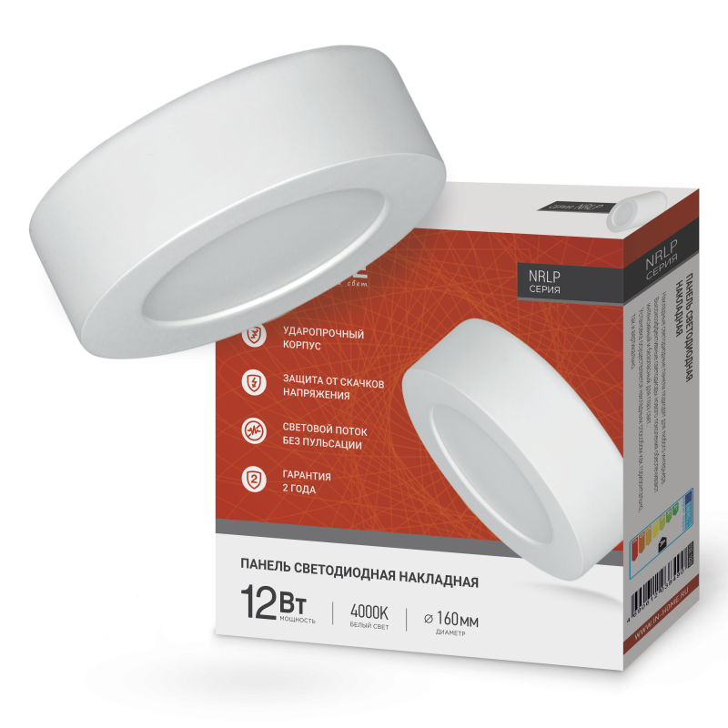 Круглые накладные светодиодные панели с алюминиевым корпусом серии NRLP – идеальное решение для внутреннего освещения помещений и светового дизайна, они станут отличной заменой потолочных светильников с традиционными лампами. Панели подходят для использования в жилых помещениях, различных коммерческих и муниципальных объектах, в том числе для освещения второстепенных и проходных помещений, локальной подсветки ниш и мебели. Универсальный дизайн модели прекрасно вписывается в любую обстановку, компактные размер и легкий вес позволяют использовать панель даже в помещениях с низкими потолками. Высокоэффективные светодиоды нового поколения обеспечивают интенсивный, но безопасный для глаз свет. Матовый рассеиватель выполнен из высококачественного пластика, который от времени не стареет, не мутнеет и не теряет своих первоначальных свойств.
