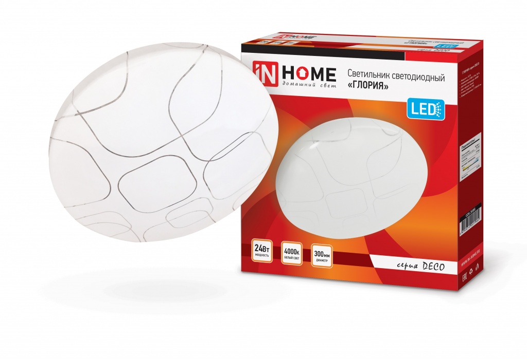 Светильник LED DECO ГЛОРИЯ 24Bт 230В 4000К 1560Лм IP40 300мм 1904/557844