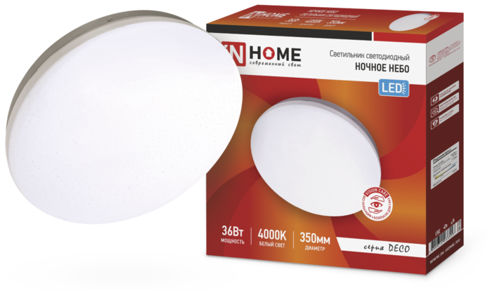 Светильник LED DECO НОЧНОЕ НЕБО 36Bт 230В 4000К 2340Лм 350х55мм IN HOME 3556