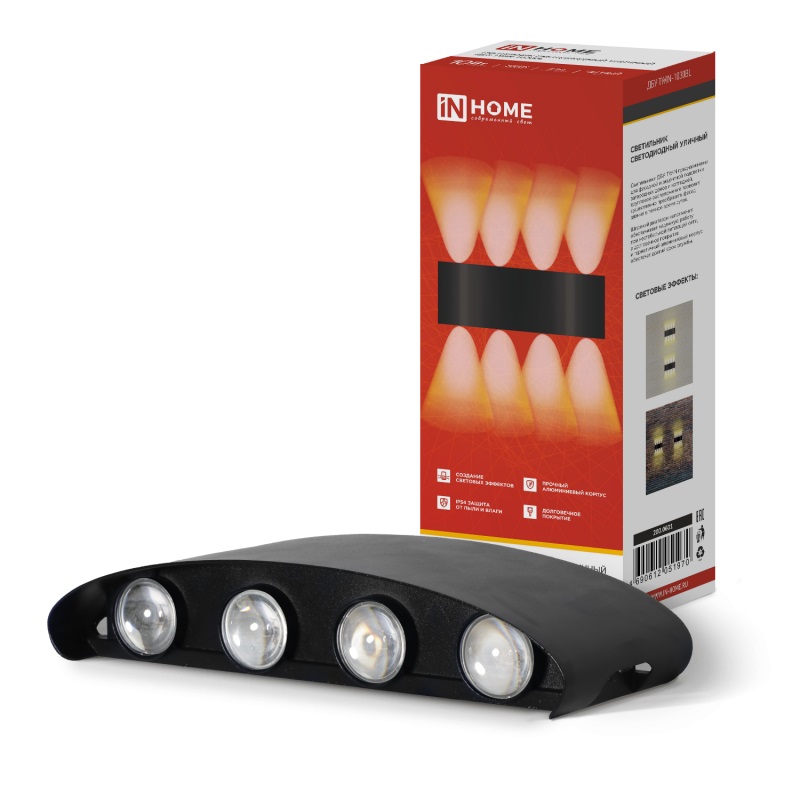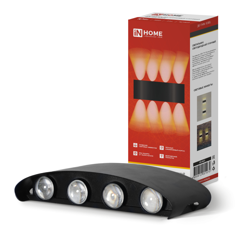 Светильник уличный светодиодный ДБУ TWIN-1030BL 10Вт 3000К IP54 черный IN HOME1970