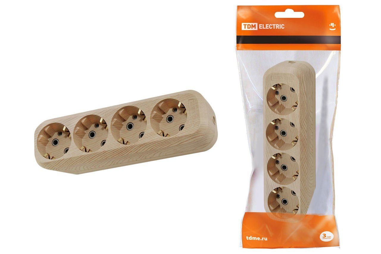 Колодка роз. 4гн. 2П+3 16А 250В "Эко" сосна TDM SQ1806-0051