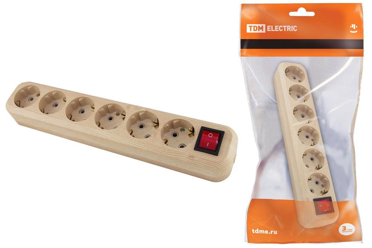 Колодка роз. 6гн. 2П+3 с выключ.16А 250В "Эко" сосна TDM SQ1806-0058