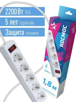 Сетевой фильтр Космос защищает устройство от выхода из строя из-за " некачественного" тока: защита от перегрузок и замыканий многоразовой автоматикой. Защита импульсных помех часто встречающихся в бытовой электросети. Лучше всего подходит для подключения чувствительной электроники:компьютеров,телевизоров,стереосистем и т.д.Максимальная мощность 2200 Вт, что достаточно для одновременного подключения двух ноутбуков, телевизора,игровой приставки и любого мощного устройства.100% медный трехжильный кабель с сечением 0,75мм, пожаробезопастный корпус. Индикатор сети. Номинальный ток 10А.