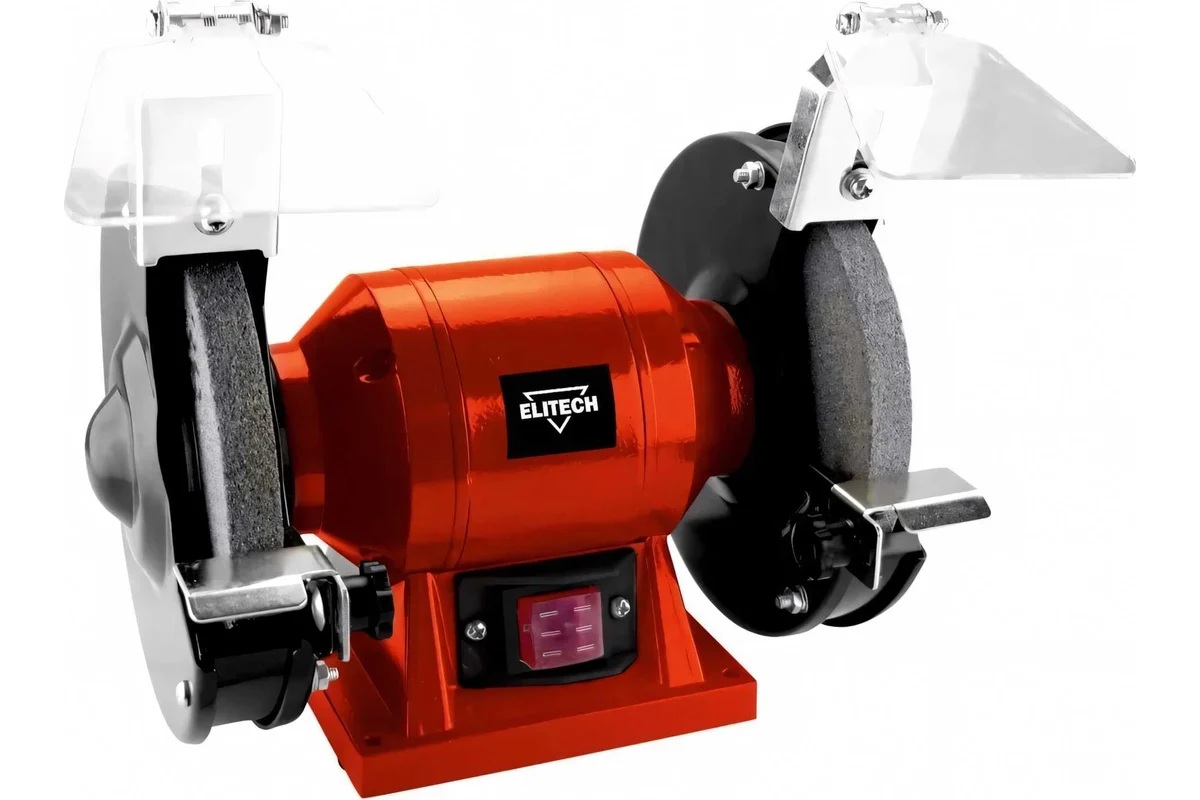 Заточный станок ELITECH ДМ СТ 150 мощностью 250 Вт предназначен для обработки шлифованием различных предметов, заточки дерево- и металлообрабатывающего инструмента, шанцевого и садового инструмента. Посадка шлифовальных кругов осуществляется через металлические фланцы, что обеспечивает очень низкий уровень вибрации при работе. Диаметр круга 150 мм, толщина 16 мм, посадочный диаметр 12,7 мм. Перед кругами установлены регулируемые упоры для обрабатываемых предметов с пазами для заточки сверл. Открытая часть кругов имеет защиту в виде регулируемого прозрачного экрана, что позволяет защитить пользователя от искр и осколков при работе. В станине имеются отверстия для крепления станка к верстаку или столу.