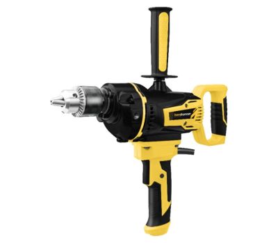 Дрель-миксер Hanskonner HDM2014E — компактный и мощный электроинструмент, с ключевым патроном и надежной конструкцией для сверления отверстий в различных материалах: пластик, дерево, сталь, шлифования различных материалов при помощи корд-щеток, а также для перемешивания технических растворов, смесей, жидких и порошкообразных компонентов с использованием специальных насадок. Данная модель имеет металлический корпус редуктора и оснащена фирменными подшипниками C&U, что увеличивает ее рабочий ресурс. Удобству в обращении с инструментом способствует фиксатор-липучка кабеля и блокировка выключателя во включенном положении при длительных работах. Регулировка частоты вращения позволяет начать перемешивание без разбрызгивания и производить точное сверление отверстий. Морозостойкий резиновый сетевой кабель длинной 4 м, позволяет охватит рабочую зону площадью 50 м2.