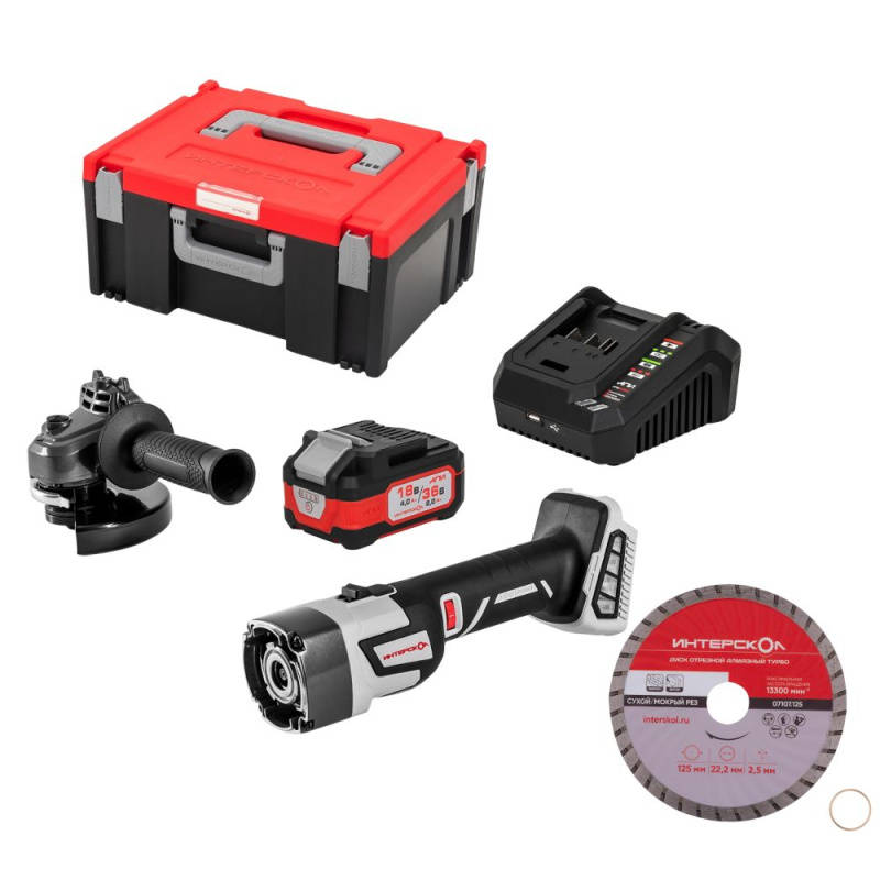 Угловая шлифмашина Интерскол УШМ-125/18В (аккум.18/36В, ЗУ -18/36) мультибокс 900.4.1.42