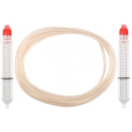 В состав гидроуровня входят две измерительные колбы, произведенные из прочной пластмассы с обозначенными шкалами. Гидроуровень включает в себя шланг диаметром 8 мм. Используется для возможности определить взаимное расположение поверхностей частей строительных конструкций, которые находятся в горизонтальной плоскости. Применяется для осуществления работ по разметке при стяжке пола, монтаже фундаментных блоков, установке строительных конструкций, кладке кирпича. Гидроуровень ЗУБР "МАСТЕР" работает по принципу сообщающихся сосудов.