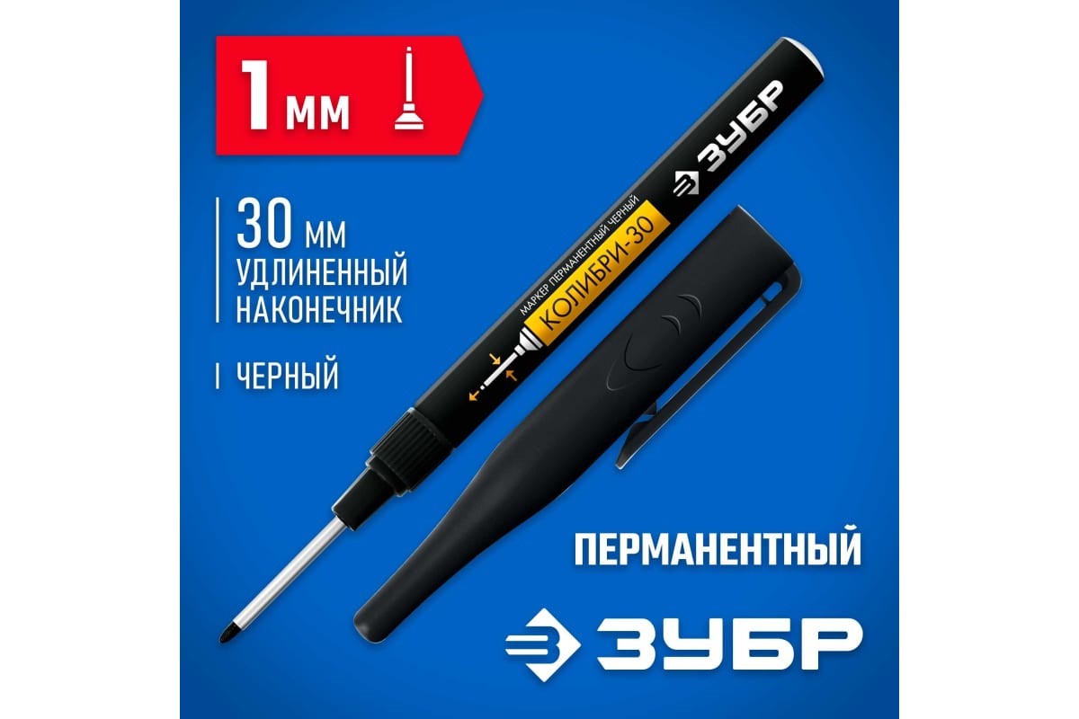 Маркер ЗУБР КОЛИБРИ-30 перманентный черный заостренный 1мм 06338-2