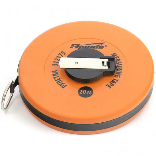 Корпус рулетки из ударопрочной пластмассы. Измерительная лента с метрической шкалой изготовлена из ПВХ-материала. Цена деления – 1 мм. Удобная катушечная ручка для сматывания.
